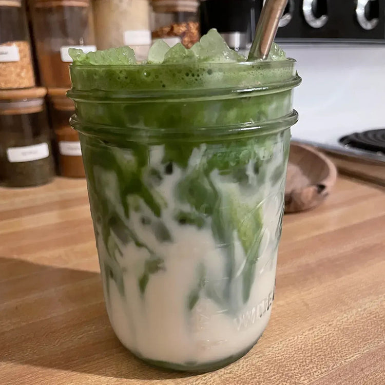 Whisk using our rechargeable, electric matcha whisk! Dont have one? Shake in a bottle, or use a blender for no clumping!